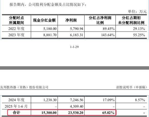 报告期内,公司累计分红1.53亿元,占净利润比例为65%。