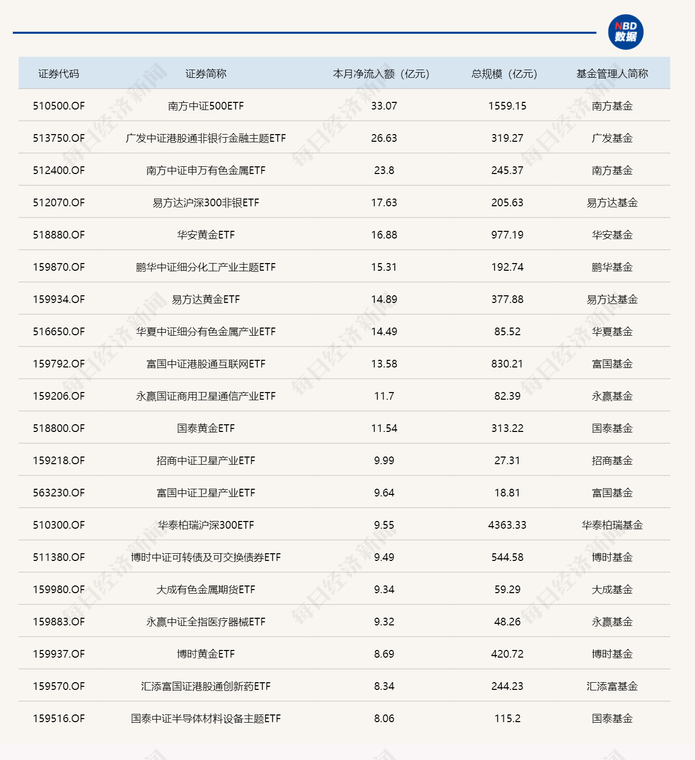 截至1月7日,本月资金净流入额居前20的ETF名单如下: