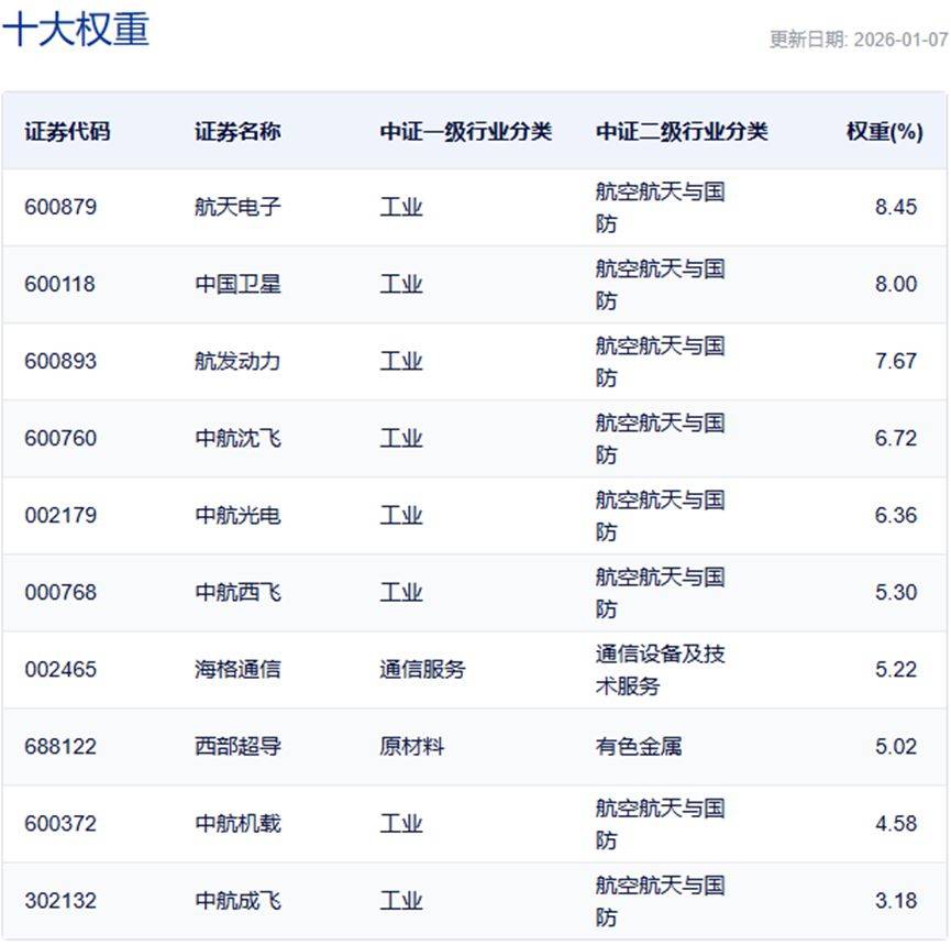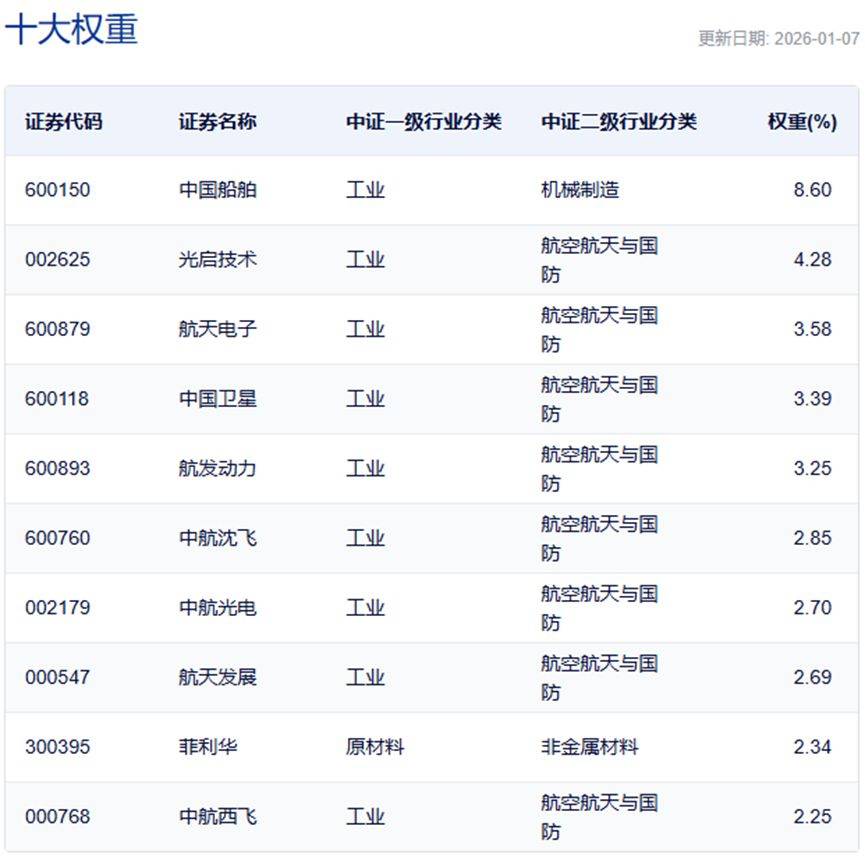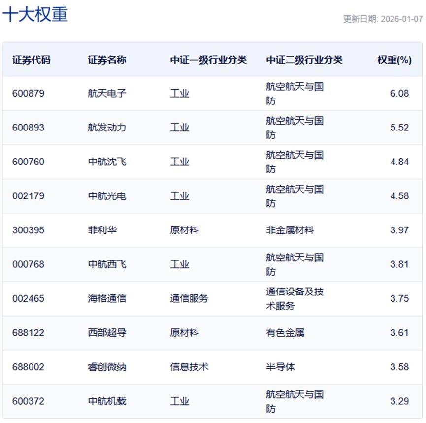 中证军工指数(指数代码:399967)从沪深市场中选取十大军工集团控股的且主营业务与军工行业相关的上市公司证券,以及其他主营业务为军工行业的代表性上市公司证券作为指数样本,以反映军工行业公司的整体表现。
