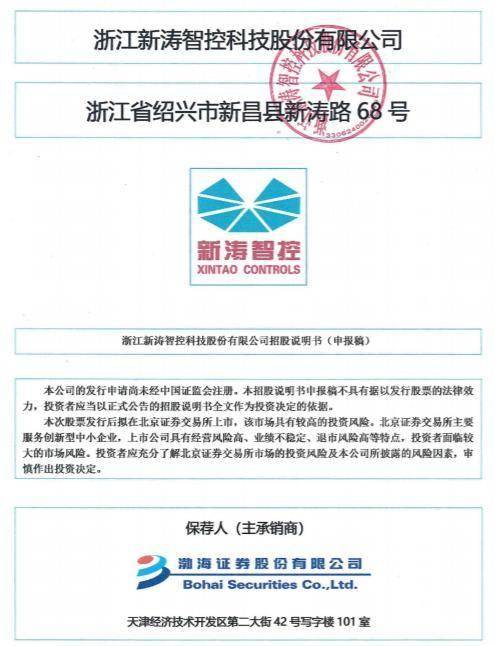 瑞财经 王敏 近日,据北交所官网,浙江新涛智控科技股份有限公司(以下简称“新涛智控”)北交所IPO获受理,保荐机构为渤海证券,保荐代表人为彭西方、赵麟。