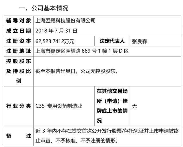 瑞财经 严明会 近日,上海翌耀科技股份有限公司(以下简称:翌耀科技)在上海证监局完成IPO辅导备案,辅导机构申万宏源。