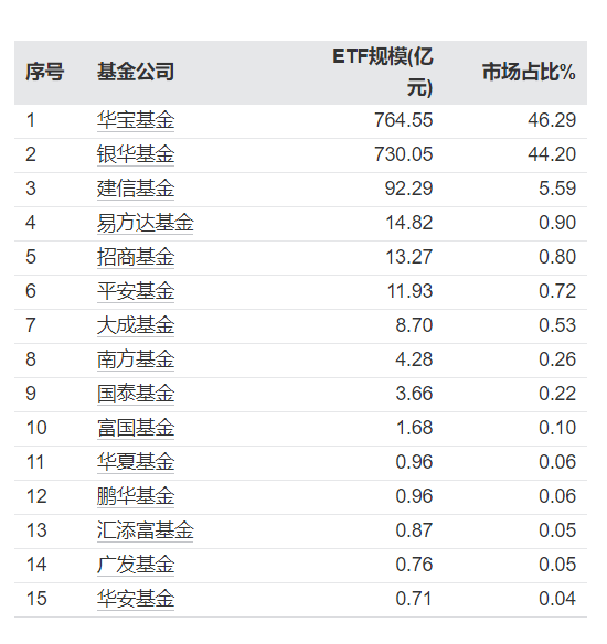 货币型ETF老大是华宝基金,老二是银华基金,都是七八多亿,不相上下,曾经银华是老大,后被华宝超越了。
