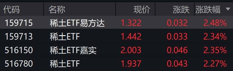 受盘面影响,稀土相关ETF涨超2%。
