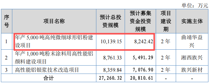 然而,在高达2亿元的募集资金中,有8242万元计划投资于年产5,000吨高纯微细球形铝粉建设项目。
