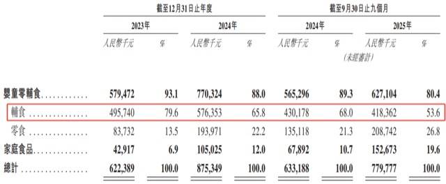 按产品类型划分,公司半数以上的收入来自婴童辅食 ,于2025年前三季度约占当期收入的53.6%。其次分别是婴童零食和家庭食品,于同期分别占当期收入的26.8%及19.6%。