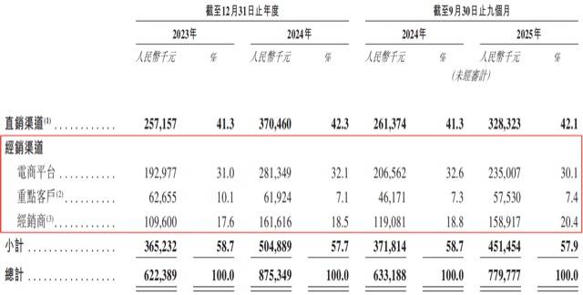 按销售渠道划分,公司5成以上的收入来自经销渠道 ,于2025年前三季度约占当期收入的57.9%。