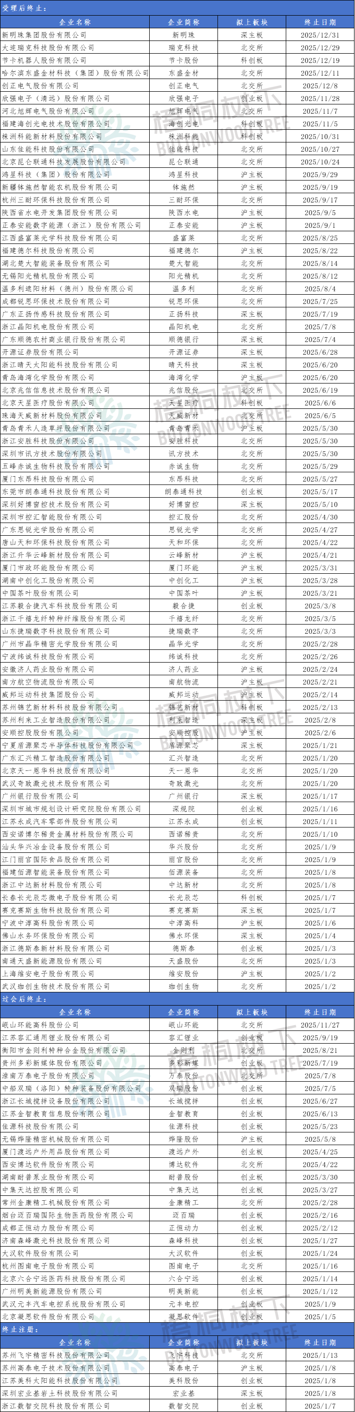 2025年A股IPO终止情况(受理后终止、过会后终止、终止注册)