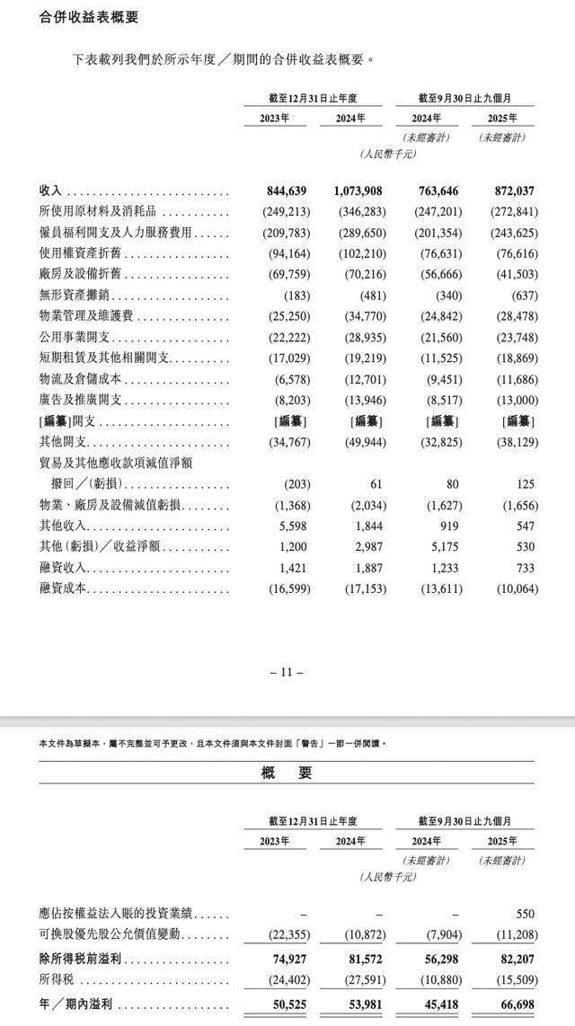 2025年前三季度,公司实现收入为8.72亿元,同比增长14.19%;期内溢利为6669.8万元,同比增长46.85%。