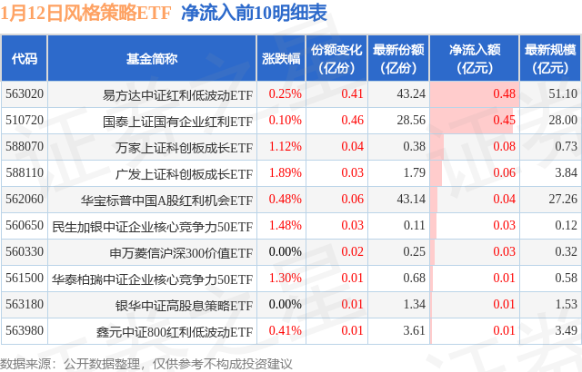 【ETF观察】1月12日风格策略ETF净流出4.04亿元