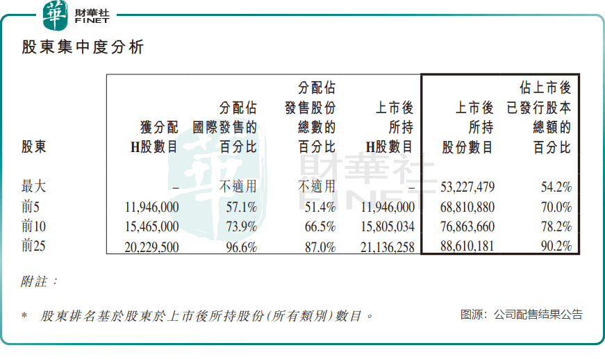 值得注意的是,股权结构显示,公司前25名股东合计持有上市后已发行股份的90.2%,股权集中度较高。