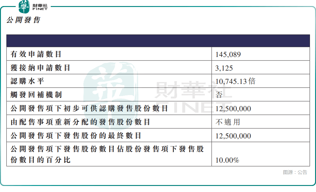 从招股阶段的表现来看,香港公开发售方面,BBSB INTL获10745.13倍超额认购,公开发售的发售股份最终数目为1250万股股份,占发售股份总数的约10%。合计共获得约14.51万份有效申请,受理申请数目3125份,申购一手(4000股)获配发股份占所申请股份总数的概约百分比为0.05%。