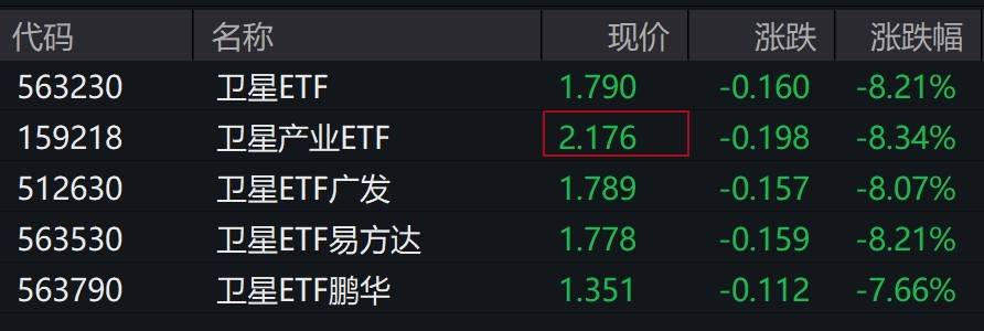 受盘面影响,卫星相关ETF跌超8%。