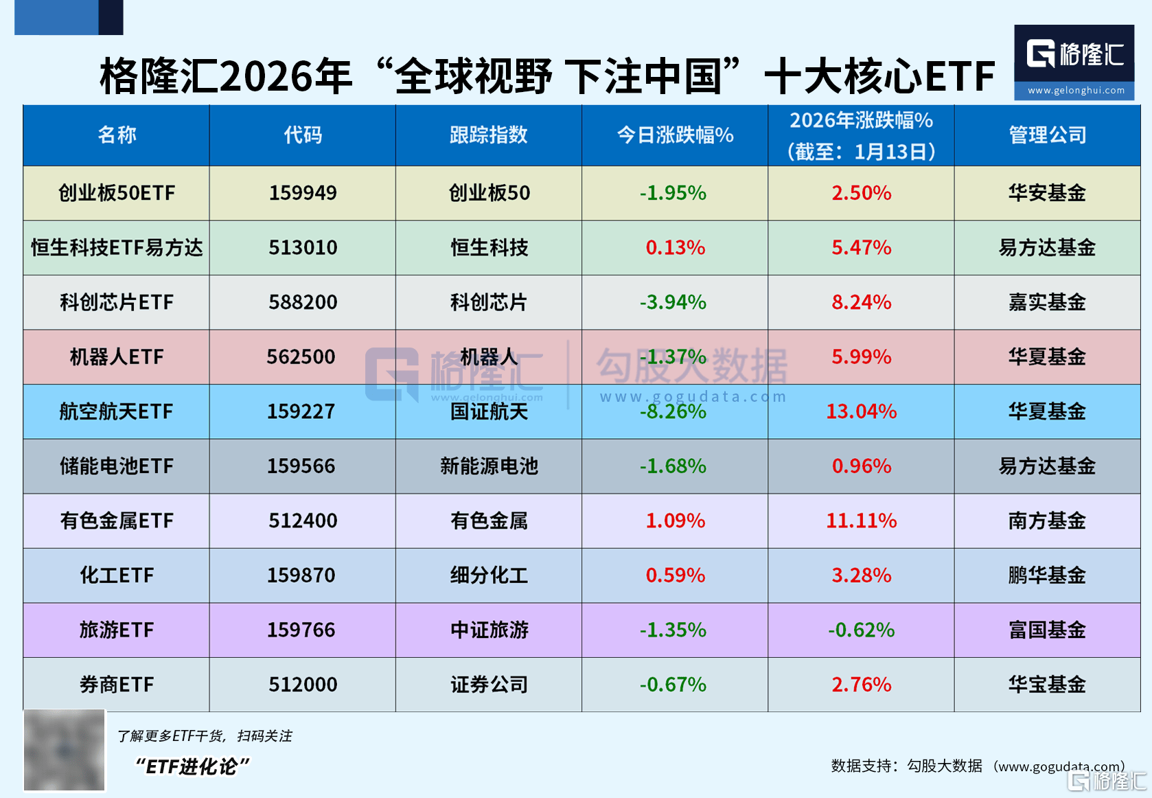 2026年“全球视野·下注中国”十大核心ETF开年以来累计上涨5.27%,其中机器人ETF(562500)同期5.99%,恒生科技ETF易方达(513010)上涨5.47%。