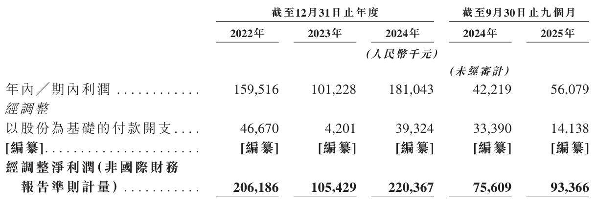 商米科技2022年、2023年、2024年经调整净利分别为2.06亿、1.05亿、2.2亿元;2025年前9个月经调整净利为9337万元。