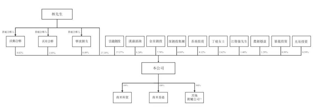IPO前,商米科技的控股股东、实际控制人为林喆。林喆持股27.38%,有79.04%投票权;沃邮合伙持股8.02%,有2.32%投票权;沃有合伙持股为2.95%,有0.85%的投票权;宁波握友持股为0.49%,有0.14%的投票权。