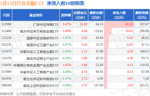 【ETF观察】1月13日行业主题ETF净流入79.21亿元