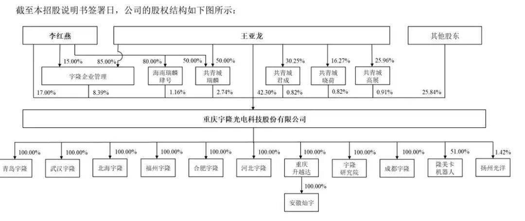 截止递表,宇隆科技由王亚龙、李红燕分别直接持有42.4%及17%,且二人通过宇隆企业管理、共青城瑞麟、共青城君成、共青城晓荷、共青城高展、海南瑞麟肆号控制宇隆科技14.86%的股权。