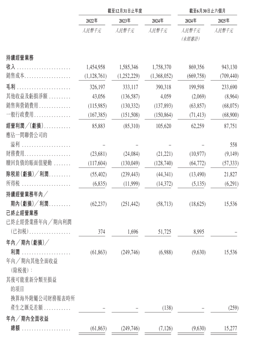 招股书显示,2022年-2024年,瑞派宠物的营收为14.55亿元、15.85亿元、17.58亿元;毛利分别为3.26亿元、3.33亿元、3.90亿元。但同期,持续经营业务年内亏损分别为6223.70万元、2.51亿元、5871.30万元。2025年上半年,瑞派宠物的持续经营业务年内利润为1553.60万元,公司实现扭亏。