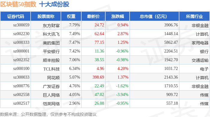 资金流向方面,区块链50(399286)指数成份股当日主力资金净流入合计18.21亿元,游资资金净流出合计29.09亿元,散户资金净流入合计10.88亿元。成份股资金流向详情见下表:
