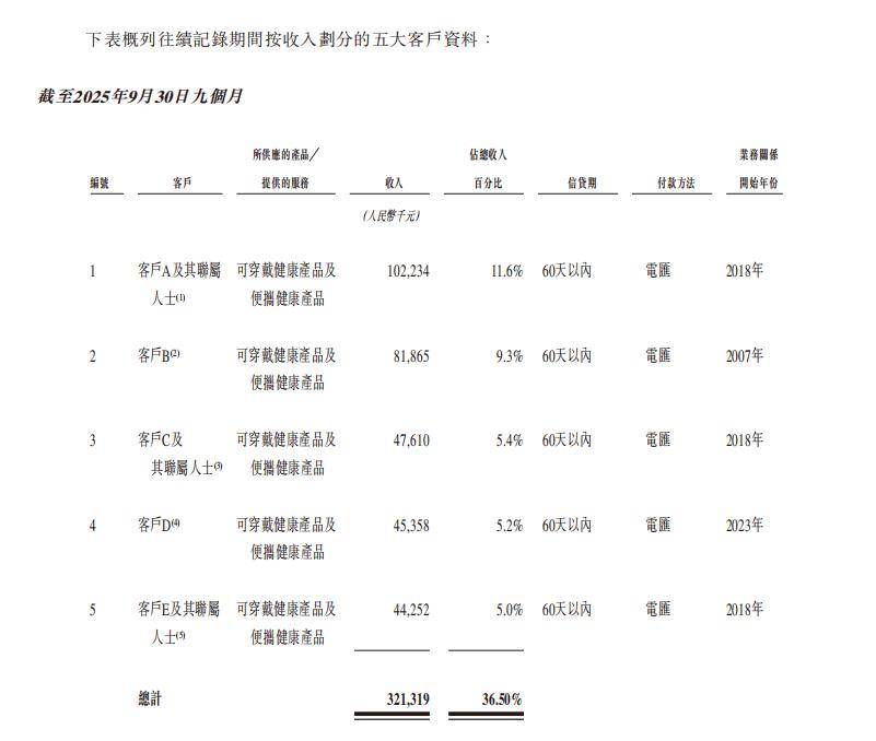 客户集中度的变化,则是渠道策略变化的另一面。据其招股书,SKG未来健康于2022年、2023年、2024年及截至2025年9月30日止九个月,其五大客户占其于各期间总收入的49.2%、52.0%、44.4%及36.5%。SKG未来健康于2022年、2023年、2024年及截至2025年9月30日止九个月,最大客户占其收入约13.4%、16.4%、14.0%及11.6%。
