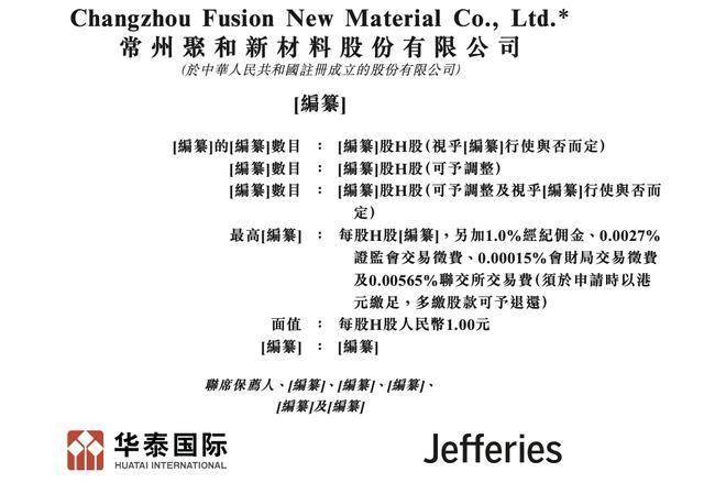 瑞财经 吴文婷1月14日,常州聚和新材料股份有限公司(以下简称“聚和材料”)在港交所递交招股书,华泰国际、杰富瑞为其联席保荐人。