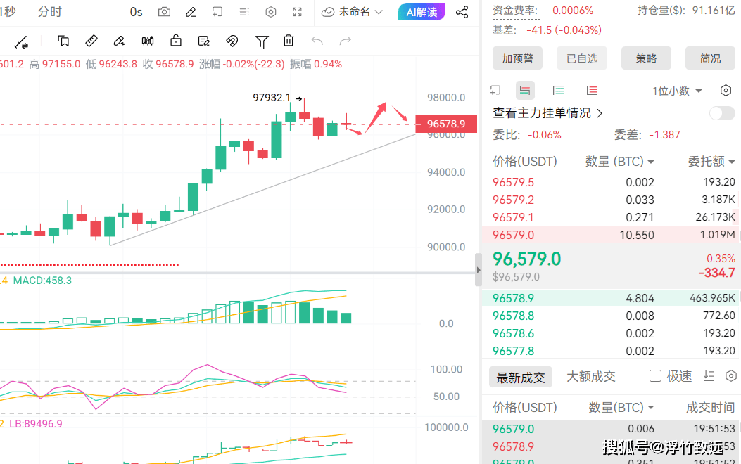 BTC受益于机构需求强劲和通胀放缓,ETF流入创纪录,推动短期反弹,短线形成上升通道,早盘测试97900美元附近后回落,日内走震荡。若BTC突破98000美元,可能重启100000美元目标。BTC短线还是关注94000美元关口的支撑,不破可考虑在此附近做多,若跌破下看90000关口,此位可布局中线多单,上方关注98000美元承压。ETH短线关注3200关口支撑情况,不破此位置可考虑多单,上方关注3400承压。(切记合约仓位控制在10%以内)
