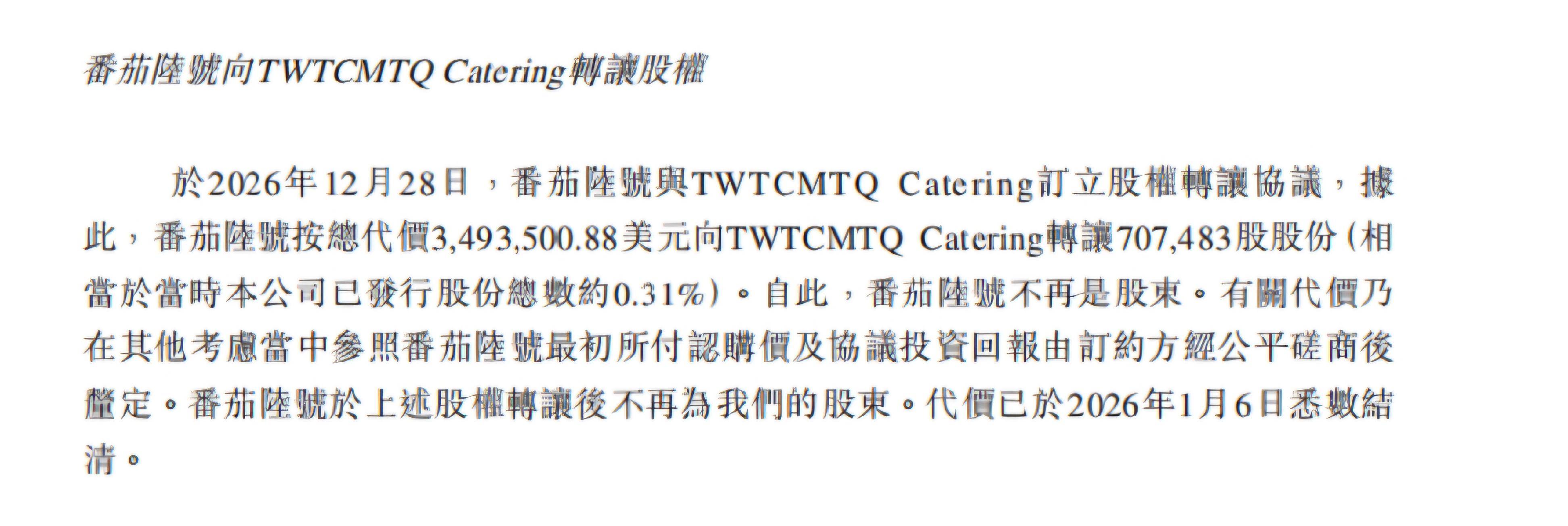 此外,经济观察报发现,其招股书中出现了一个错误,其显示2026年12月28日,投资机构番茄六号曾转让股权给极物思维的另一股东方,代价已于2026年1月6日悉数结清,因此签订协议的时间应为“2025年12月28日” 。
