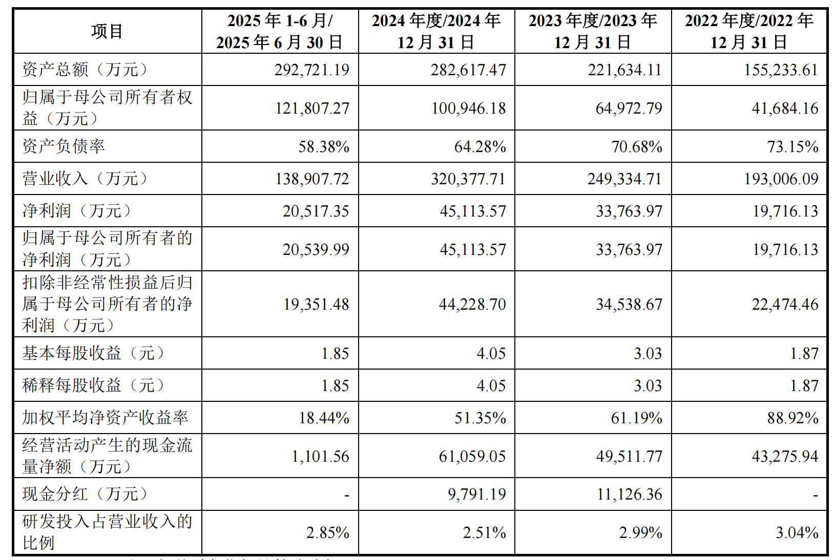 报告期内,公司营业收入分别为19.30亿元、24.93亿元、32.04亿元、13.89亿元,扣非前后孰低净利润分别为1.97亿元、3.38亿元、4.42亿元、1.94亿元。