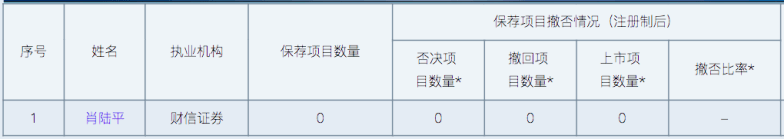 另一名保代肖陆平2023年11月获登记为保荐代表人,至今保荐项目数量为0,无保荐首发、非公开发行等项目经验。