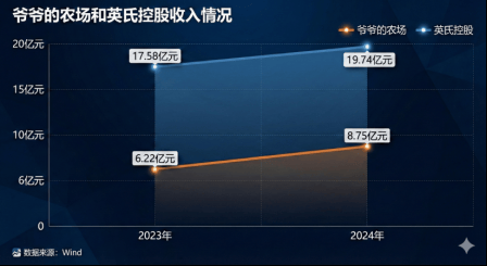 2024年,爷爷农场收入为8.75亿元,而婴童辅食商英氏控股同期营收已达到19.74亿元。