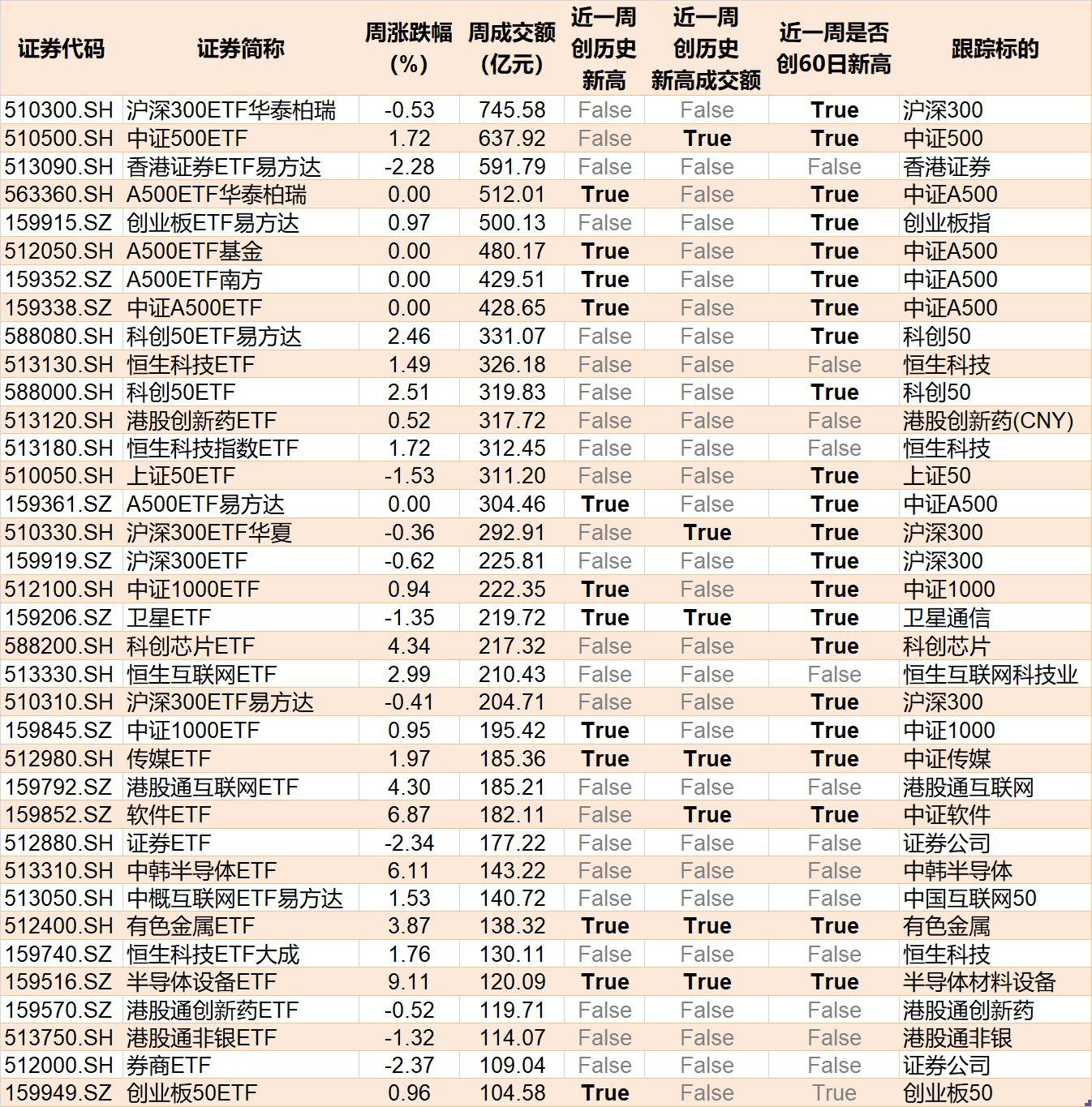 其中,中证500ETF周成交额超600亿元,创历史新高。