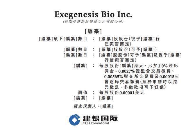 瑞财经 刘治颖 1月14日,ExegenesisBioInc.(以下简称:嘉因生物)向港交所主板递交上市申请,建银国际为其独家保荐人。