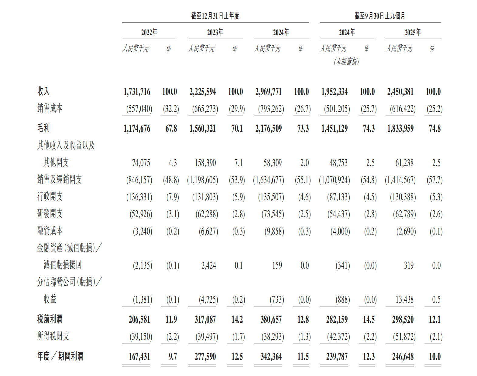 2025年前三季度,在营收同比增长25%以上的情况下,归母净利润仅小幅增长,而扣非净利润出现同比下滑5.42%。更值得关注的是,销售费用率持续攀升,已接近60%。