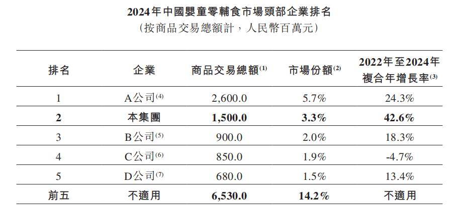 根据弗若斯特沙利文数据,按2024年中国婴童零辅食的商品交易总额(GMV)计,爷爷的农场以15亿元GMV排名第二,市场份额约3.3%,距离行业“一哥”英氏控股26亿元的GMV、5.7%的市场份额,仍有一定差距。