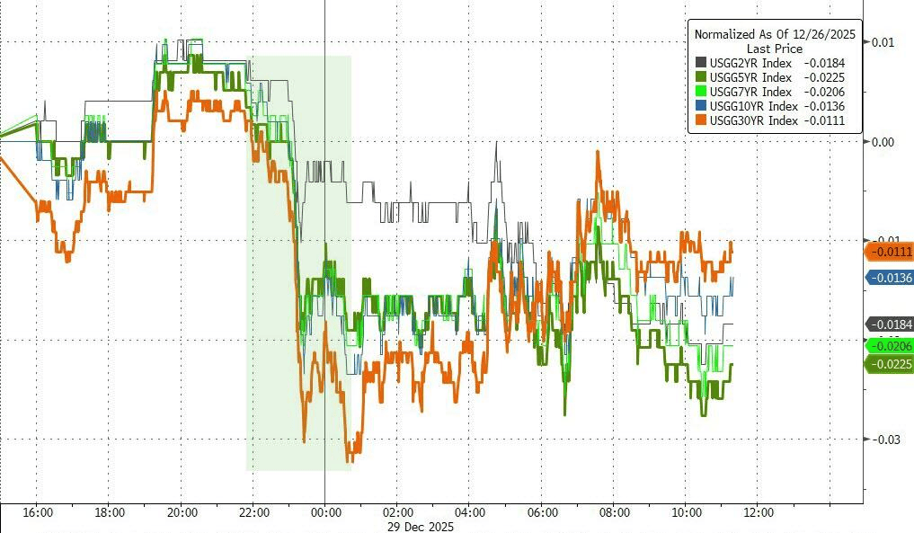 周一,此前高歌猛进的贵金属和股票市场双双回调。美债获得温和买盘,分析认为资金开始阶段性流向防御资产。