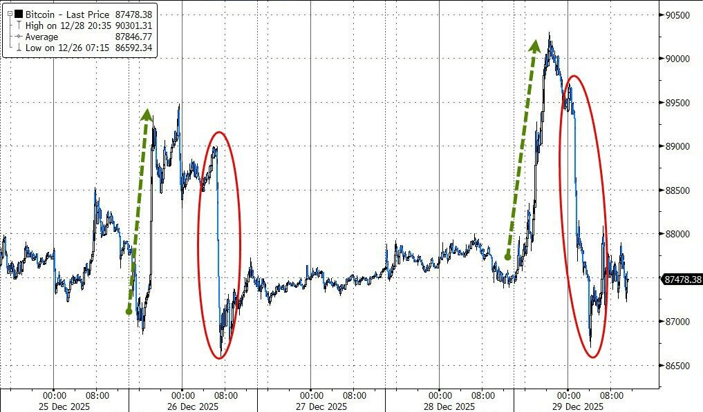 遭受重创的不仅是贵金属,加密货币市场也在12小时内经历了暴涨暴跌。比特币再度上演冲高回落,短暂站上9万美元后迅速跌回8.7万美元下方,延续近期相对疲弱的走势。