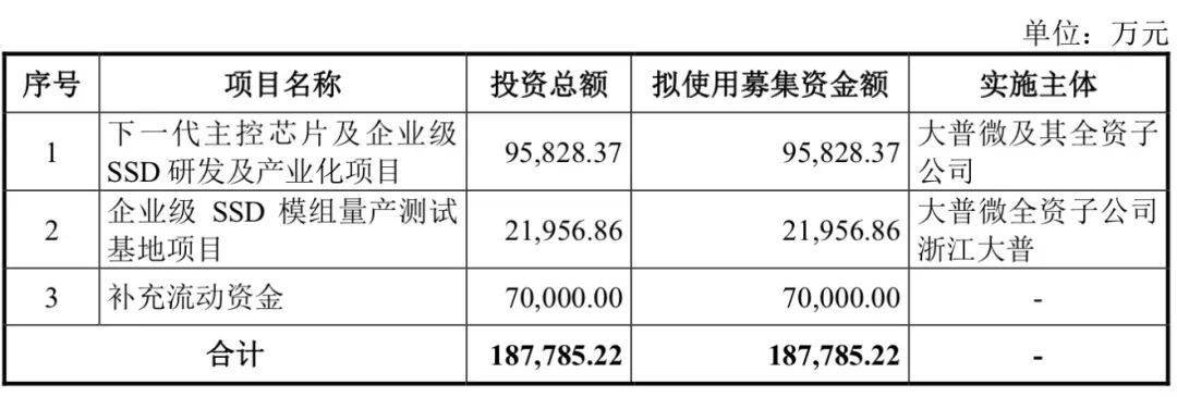 大普微此次IPO保荐机构为国泰海通证券,会所为天健,律所为金杜,拟募集资金 18.78亿元。