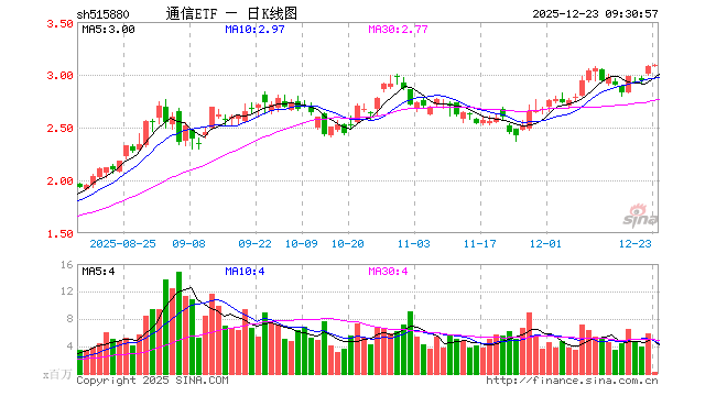 12月23日,通信ETF(515880)开盘涨0.06%,报3.084元。通信ETF(515880)重仓股方面,新易盛开盘跌0.02%,中际旭创涨1.21%,工业富联跌0.10%,中兴通讯跌0.13%,天孚通信涨0.22%,中天科技跌0.30%,亨通光电跌0.84%,传音控股跌0.88%,闻泰科技涨0.43%,剑桥科技涨0.02%。