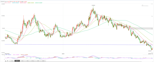 支撑位:0.0437;阻力位:0.0448