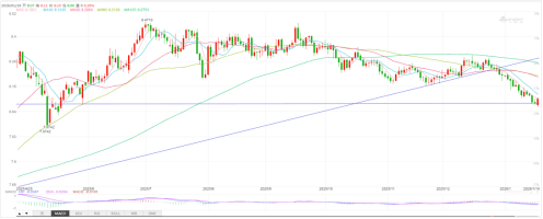支撑位:8.0621;阻力位:8.1030