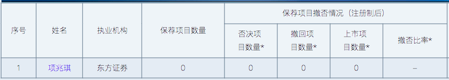 另一名保代项兆琪已保荐项目数量为0,无首发、非公开发行等项目保荐经验。