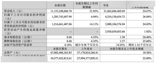 2025年前三季度,汇川技术实现营收为316.63亿元,同比增长24.67%;归母净利润为42.54亿元,同比增长26.84%。
