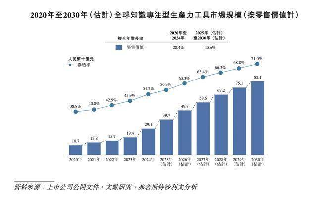 按设备的销售收益以及深度集成于终端设备的软件及服务生态收益计,全球知识专注型生产力工具市场规模从2020年的107亿元增长至2024年的291亿元,复合年增长率约为28.4%。2024年,在新产品迭代、产品组合升级及渠道覆盖扩展的推动下,市场规模实现同比增长。于期内,预期市场规模将从2025年的397亿元增长至2030年的821亿元,复合年增长率约为15.6%。同期,预期该分部在整体知识专注型智能工具市场的渗透率将从2020年的38.8%攀升至2030年的71.0%,反映需求正从“专注阅读”向“读写一体及内容积累”扩展,终端工作流程与云服务的融合正在深化。