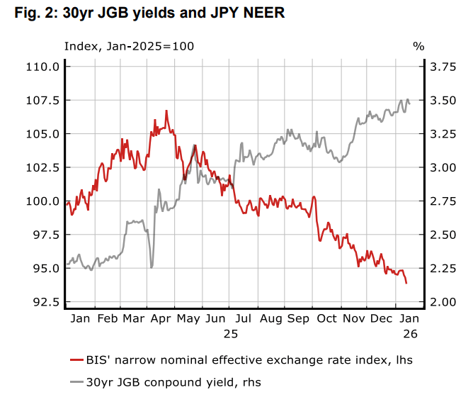 这种向减税政策的转变,直接引发了市场对日本财政状况恶化的担忧。野村指出,这是导致日本国债(JGB)遭到抛售并拖累日元的重要因素。