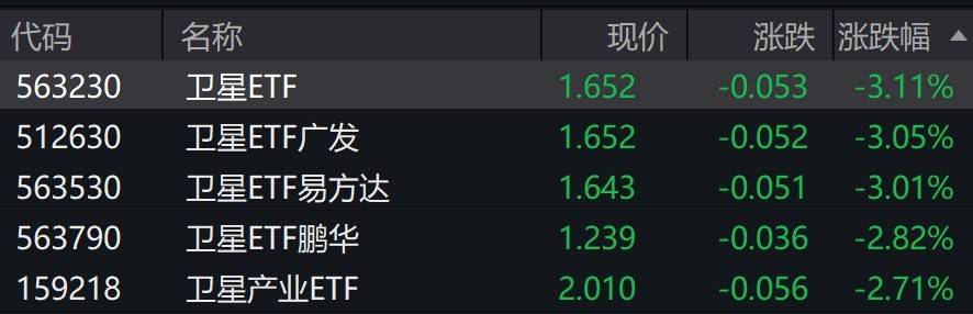 受盘面影响,卫星相关ETF跌约3%。