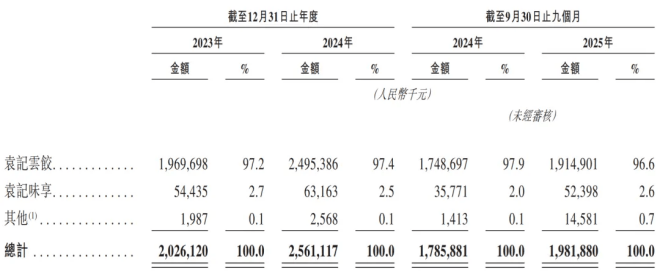 旗下“袁记云饺”聚焦堂食、熟食及生食的外带与外卖,覆盖即时性消费场景,常年贡献97%左右的营收;“袁记味享”则以预包装产品切入商超零售及团餐B端,承接计划性消费需求——双品牌策略实现对“即时就餐-外卖到家-家庭囤货-团体采购”全场景的无缝覆盖。2025年前三季度,袁记味享收入同比增长46.48%,成为新的增长曲线。