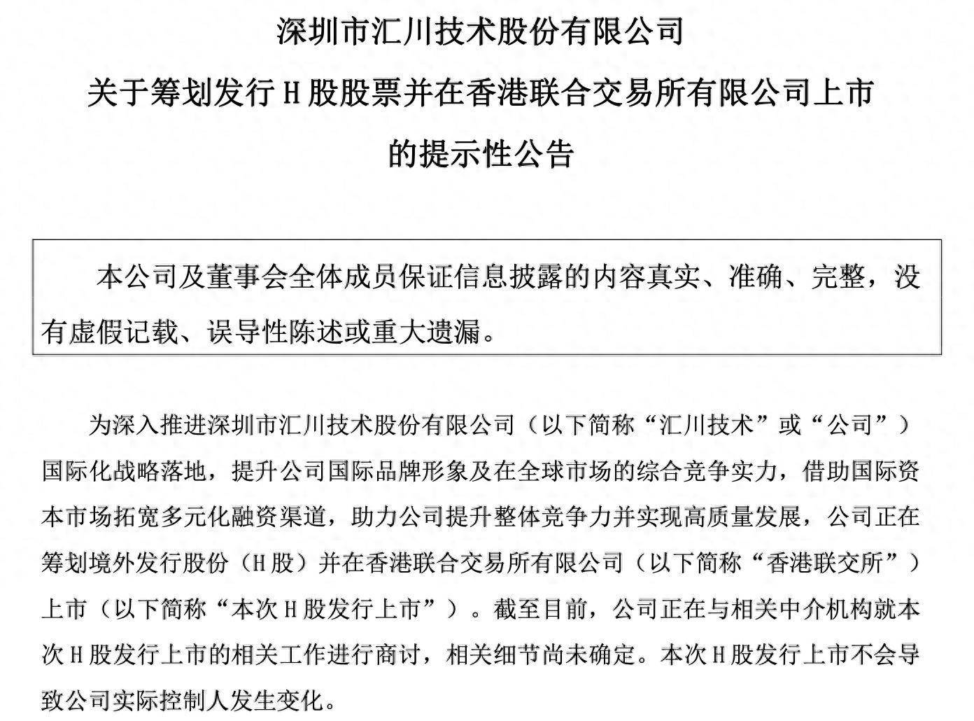 瑞财经 吴文婷1月19日,汇川技术发布公告称,为深入推进国际化战略落地,提升公司国际品牌形象及在全球市场的综合竞争实力,借助国际资本市场拓宽多元化融资渠道,助力公司提升整体竞争力并实现高质量发展,公司正在筹划境外发行股份(H股)并在香港联合交易所有限公司(以下简称“香港联交所”)上市。