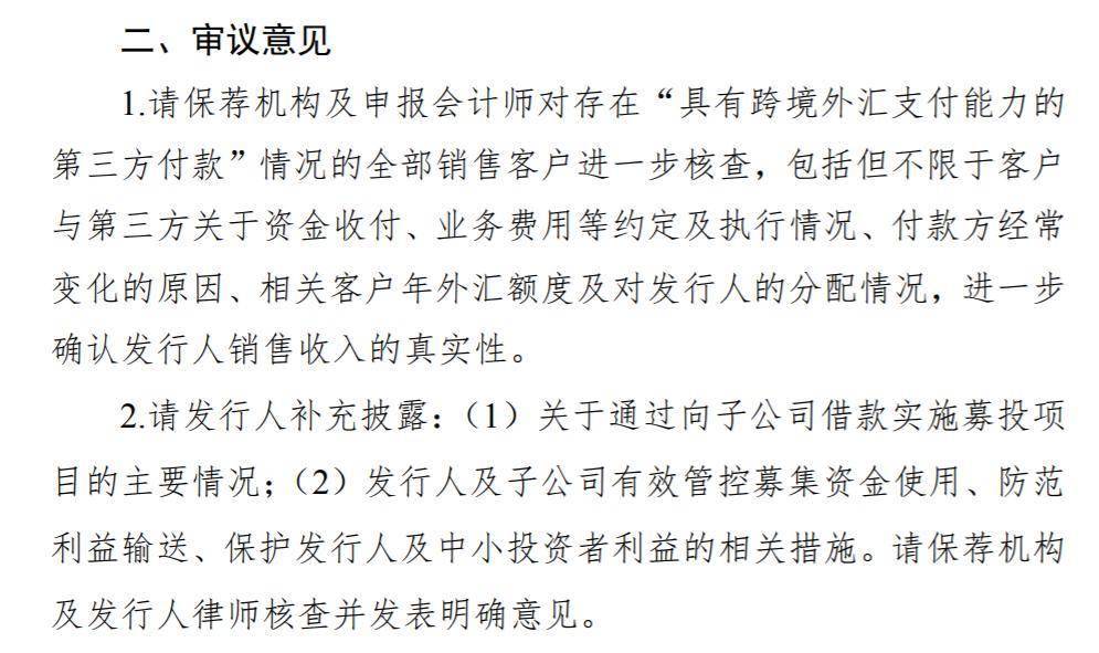 在上市委会议现场,上市委要求保荐机构及申报会计师对存在“具有跨境外汇支付能力的第三方付款”情况的全部销售客户进一步核查,包括但不限于客户与第三方关于资金收付、业务费用等约定及执行情况、付款方经常变化的原因、相关客户年外汇额度及对信胜科技的分配情况,进一步确认公司销售收入的真实性。