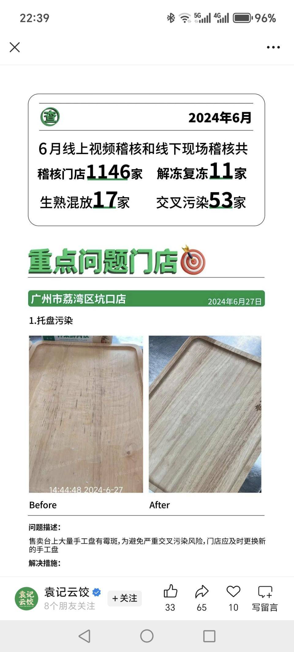 在这之后,袁记云饺虽还公布自查食品安全问题,但已经不再公布总体情况,仅展示部分门店出现的问题。