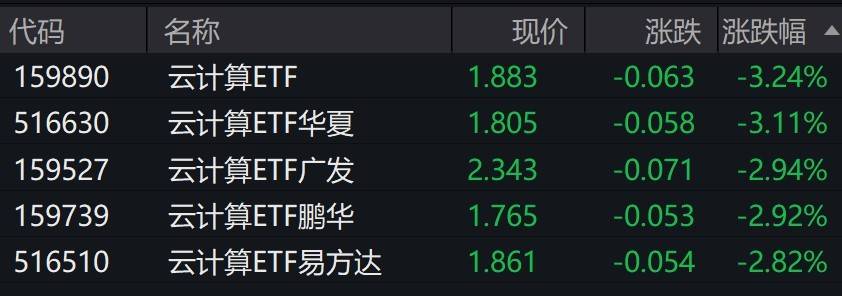 受盘面影响,云计算相关ETF跌约3%。